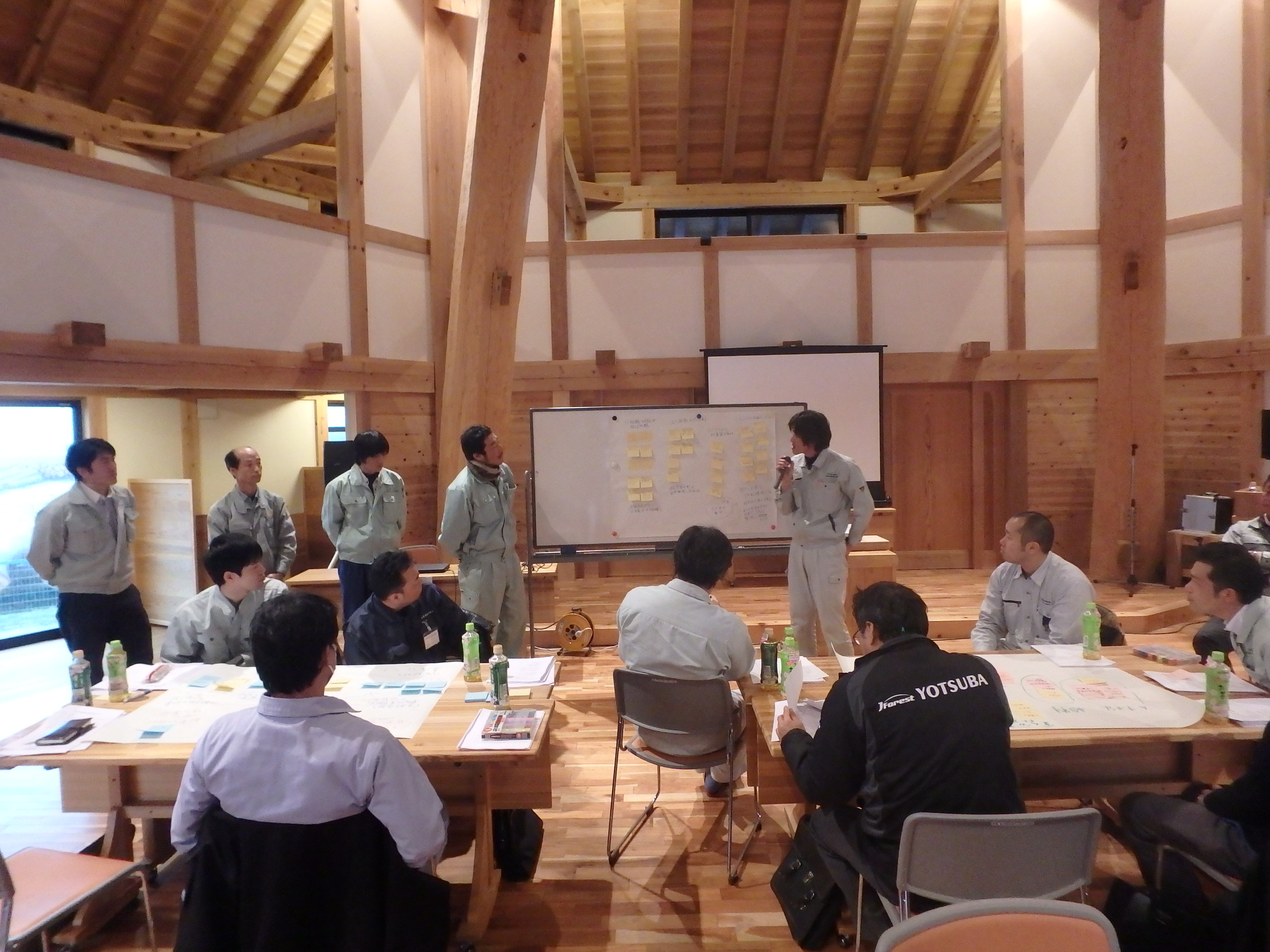 当日は台風並みの暴風になったにもかかわらず、県内各地から参加者が集まり、群馬・多野東部森林組合の浦部参事を講師に招き、能力評価制度導入の取り組みについてお話いただいた後、組織改善と自己改善をテーマに参加者でgループディスカッションを実施しました。