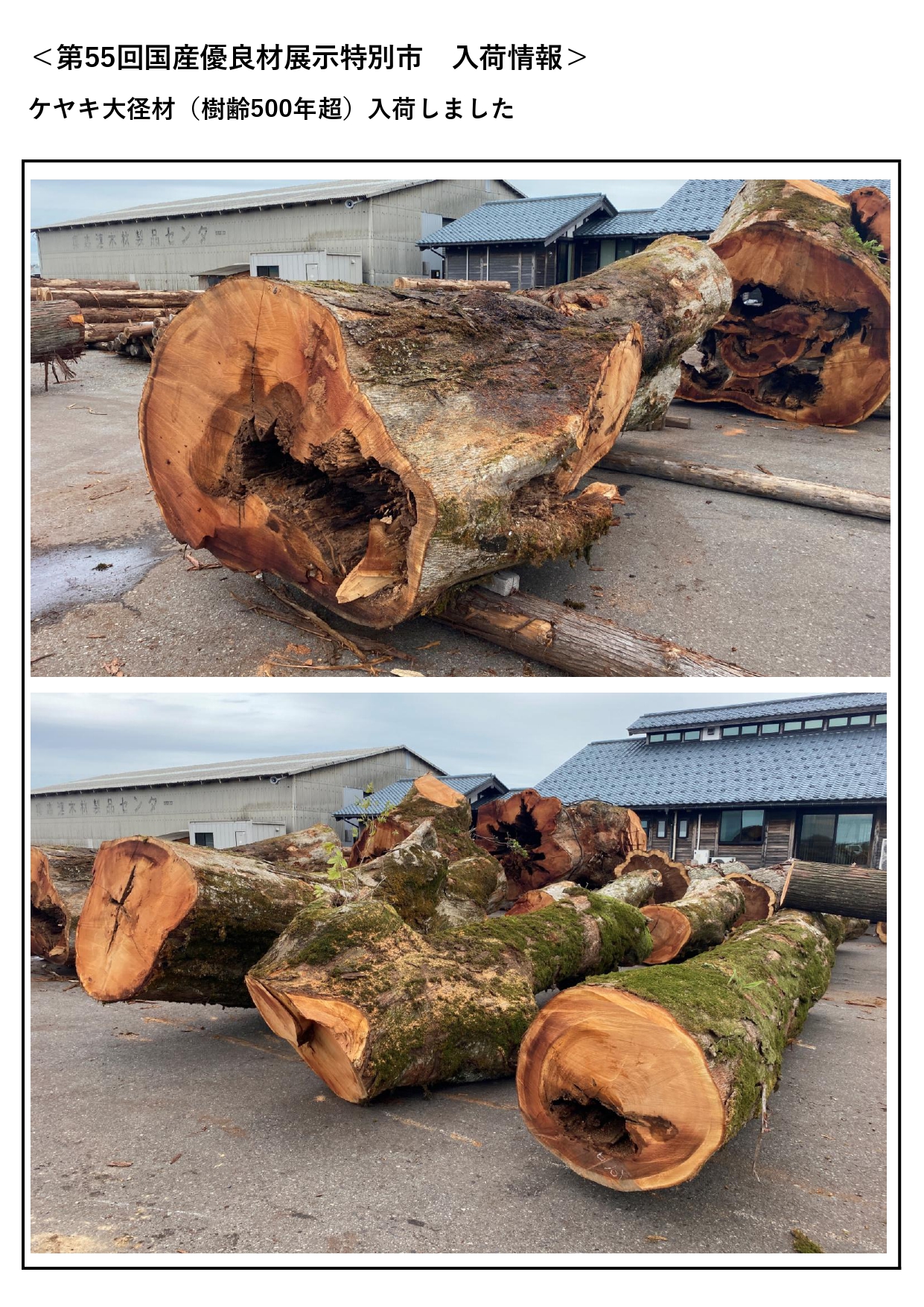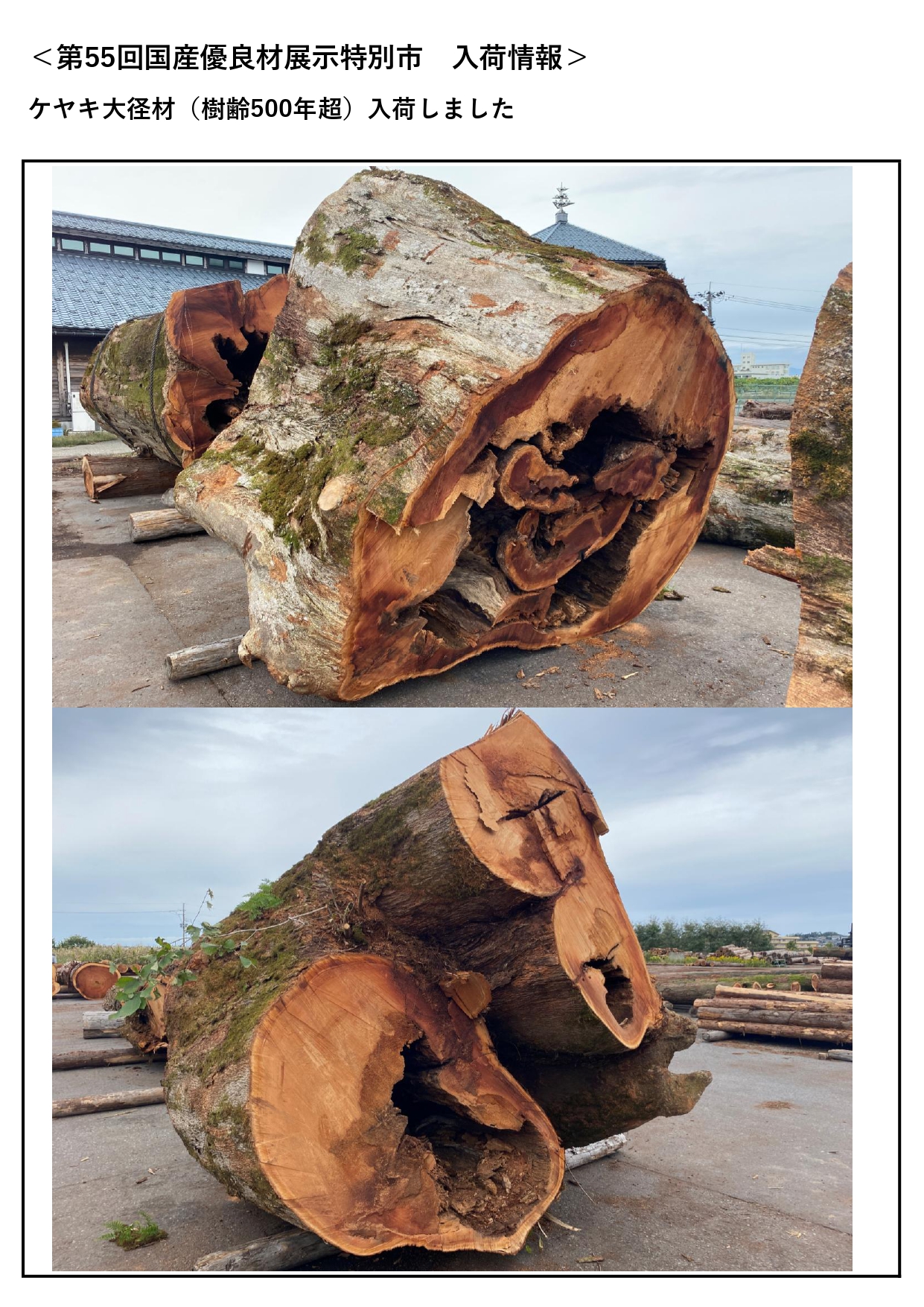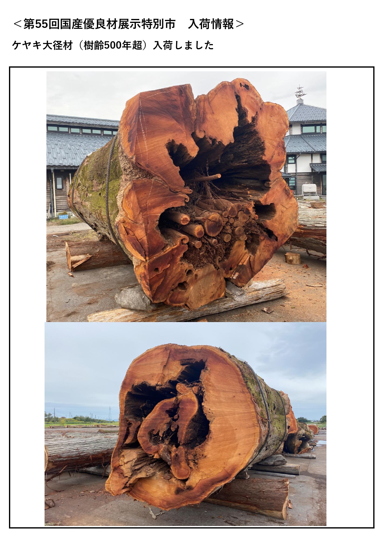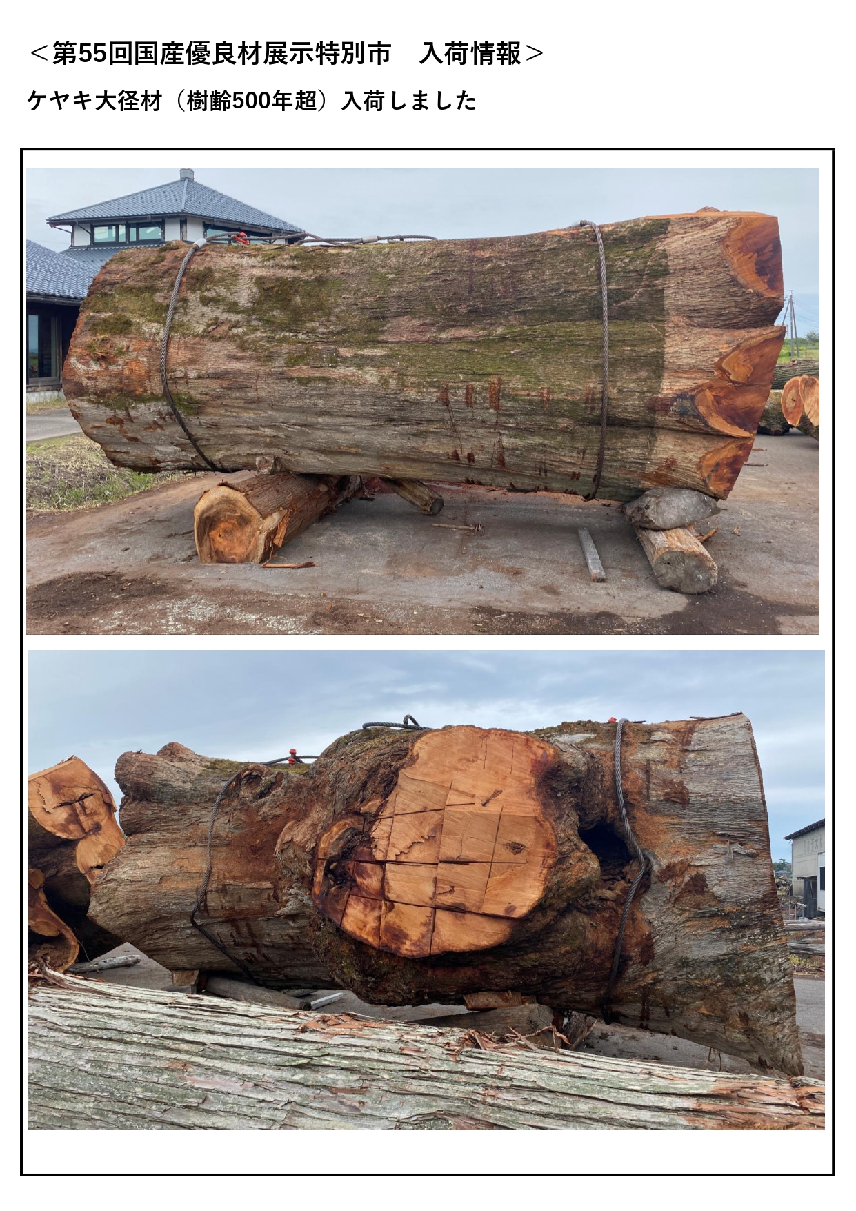 10月28日 第55回国産優良材展示特別市 出材情報③ ケヤキ大径材入荷!