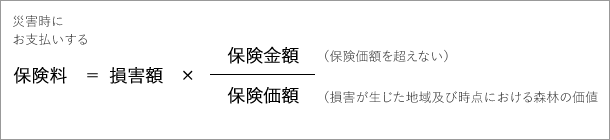 申込時に払い込む保険料は、設定された保険金額に対して保険料率(保険金額1,000円につき年間1.2円~4.3円)を乗じた金額となります。 保険料率は、都道府県別、樹種別(針葉樹・広葉樹の別)、林齢別(20年生以下・21年生以上)に定めています。 保険金額は、標準金額を上限として任意に設定できます。